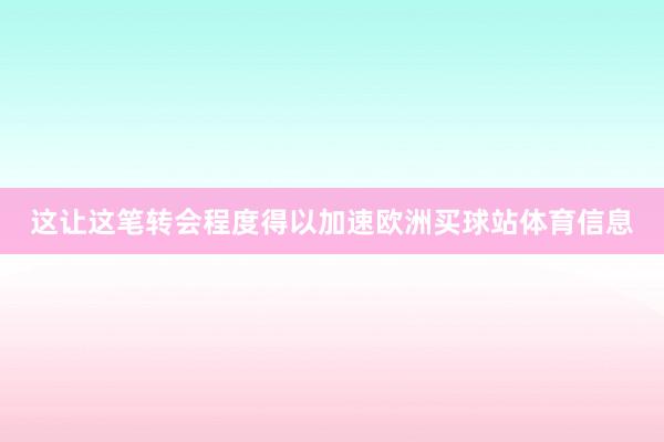 这让这笔转会程度得以加速欧洲买球站体育信息