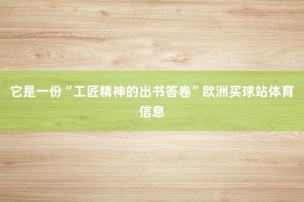 它是一份“工匠精神的出书答卷”欧洲买球站体育信息