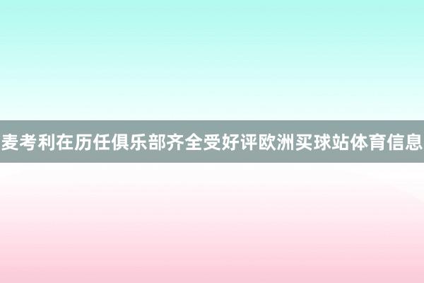 麦考利在历任俱乐部齐全受好评欧洲买球站体育信息