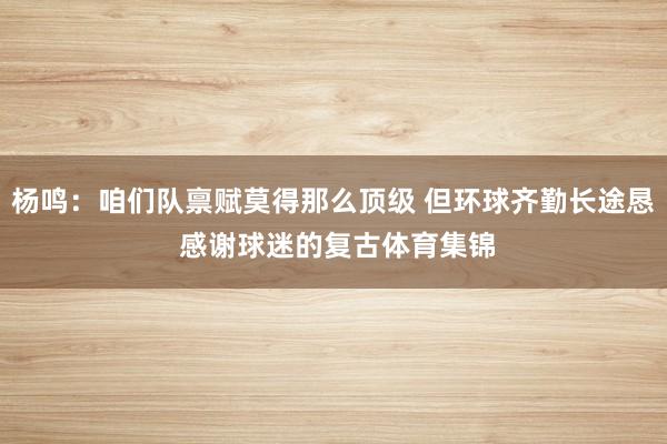 杨鸣:咱们队禀赋莫得那么顶级 但环球齐勤长途恳 感谢球迷的复古体育集锦