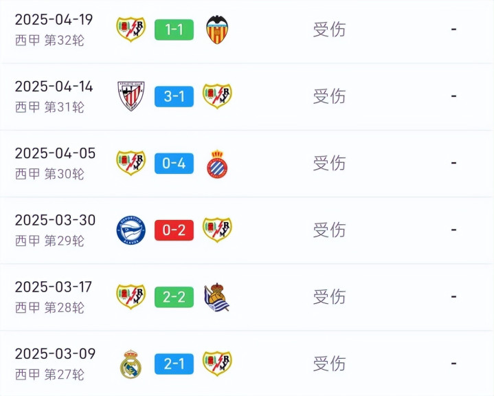 目下巴列卡诺队内的伤病情况亦然影响着球队的施展,目下球队内部的主力后卫穆明受伤了,在他缺席的这6场比赛里,球队只赢了2场,这名后卫的缺席,径直表示了巴列卡诺后防的晦气,最近三场比赛狂丢8球便是一个阐述。