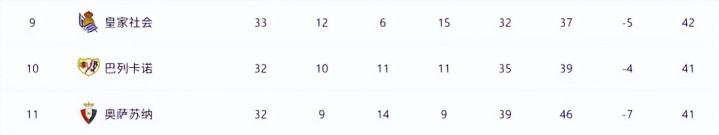目下球队也曾在西甲积分榜上滑落到了第10名。